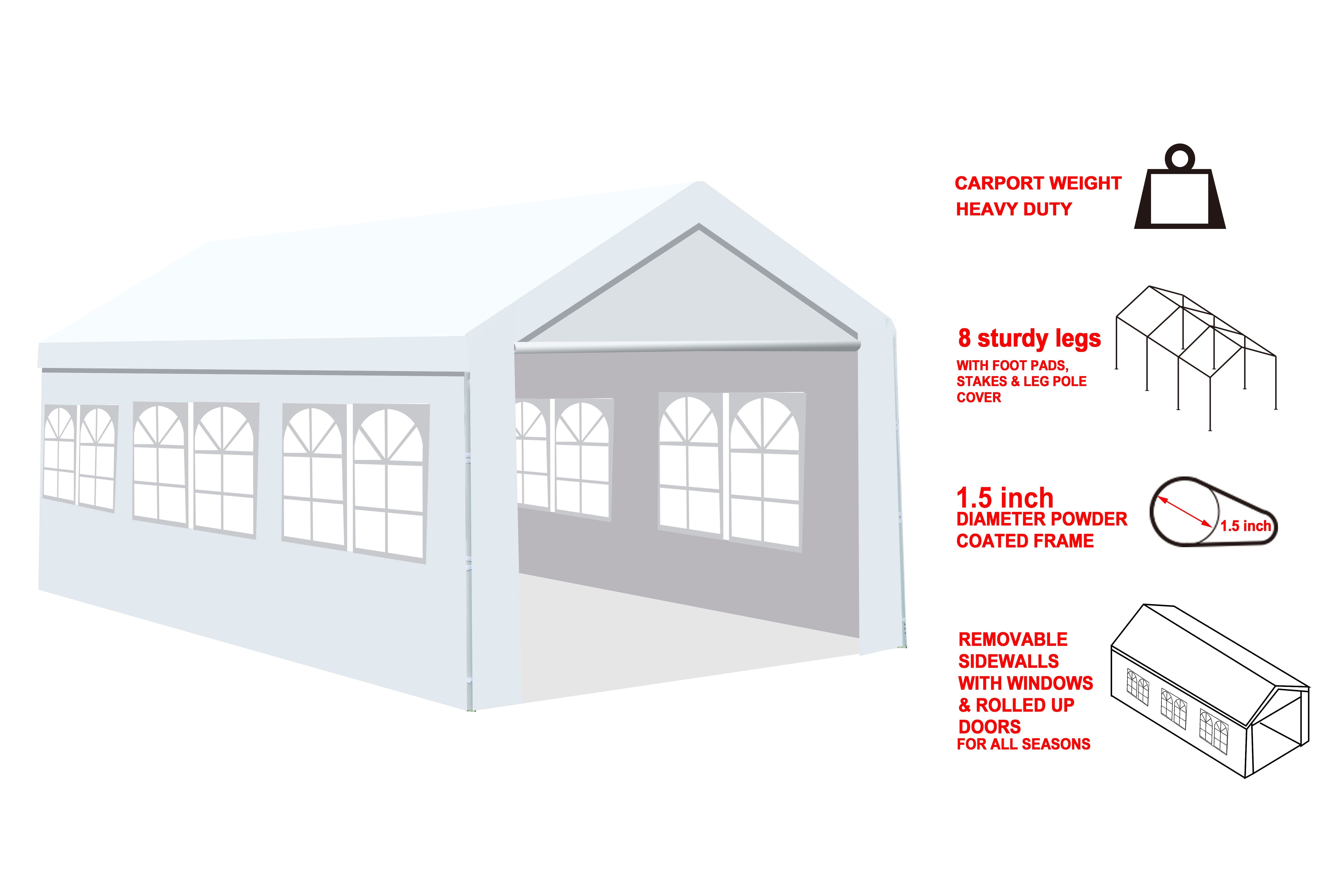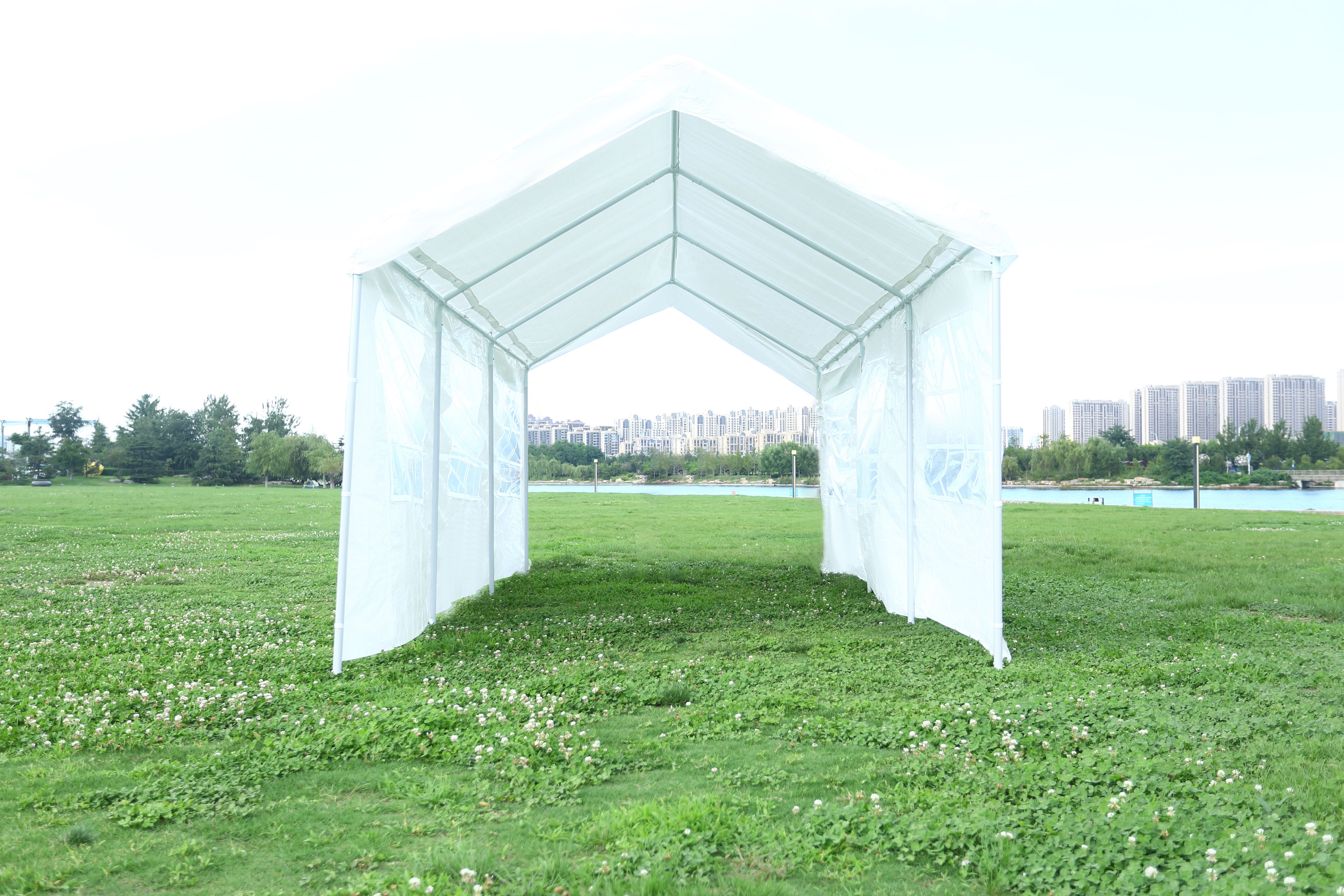 Quick and easy setup2 removable sidewalls & 2 removable doors for cross ventilation and venting.heavy duty 38mm powder coated tubesize 10x20x9ft160g PE UV protected ,waterproofmultifunction use,wedding, birthday party, graduation party, flea markets, car tent, family parties, picnics, sports events, outdoor vendors, craft fairs, job sites and camping trips, etc.Packaging 1xsteel frame1xtop cover2xsidewall2xzipper door1x necessary assembly partsr2xsidewall2xzipper door1x necessary assembly parts